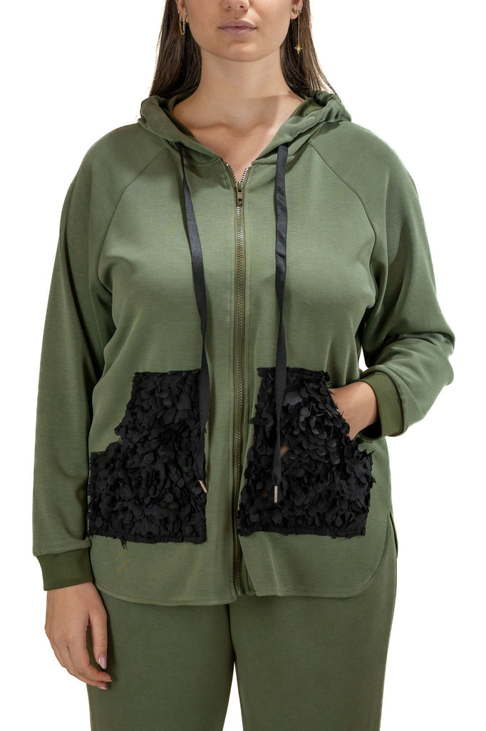 Applicazione tasca a rilievo, disponibile nera e verde militare, tessuto 50% viscosa 47% poliestere 3%Elastan