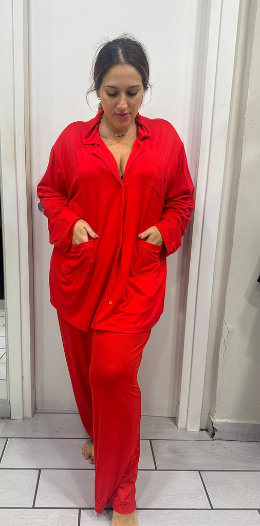 Taglia unica, tessuto elastico 95% cotone, 5%  giacca con bottoni e taschini. Pantalone con elastico in vita