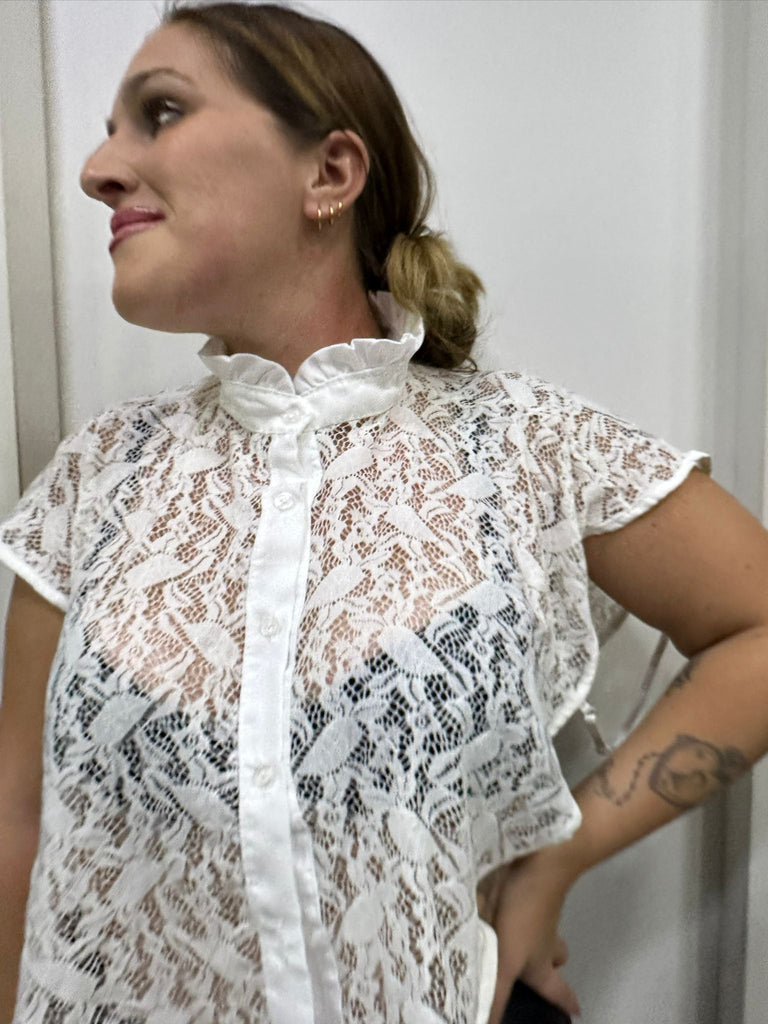 Regolabile nei lati, collo pistagna, tessuto pizzo e cotone
